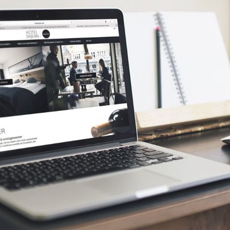 Hjemmesiden understøtter Hotel Skjerns stærke visuelle identitet, som er med til at sikre en effektiv kommunikation, hvor kunderne ikke er i tvivl om, hvem der kommunikerer til dem.